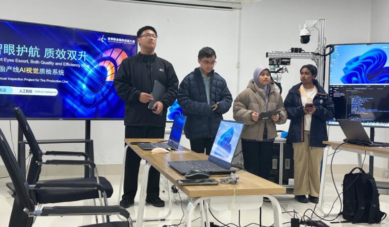 yang telah menunjukkan komitmen sepanjang latihan dan pertandingan World Vocational College Skills Competition 2025 hari ini di Tianjin Light Industry Vocational Technical College (TLIVTC) pada 10 November 2025. Kumpulan ini telah berjaya mendapat tempat ke 6 daripada 18 kumpulan yang bertanding. Penyertaan pertandingan ini disertai dari luar negara seperti Indonesia, Pakistan, Bangladesh, Ireland dan Russia.